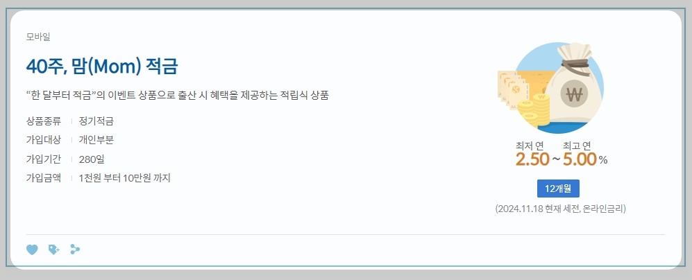 신한은행에서 출시한 40주 맘적금이 출산축하금으로 임산부사이에서 인기를 끌고 있습니다.