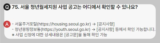 ※ 24년 이전 서울시 청년월세지원 기 선정(수급)자, 국토교통부 청년월세 한시 특별지원선정(수급)자 및 24년 은평형 청년월세 선정(수급)자는 지원 불가